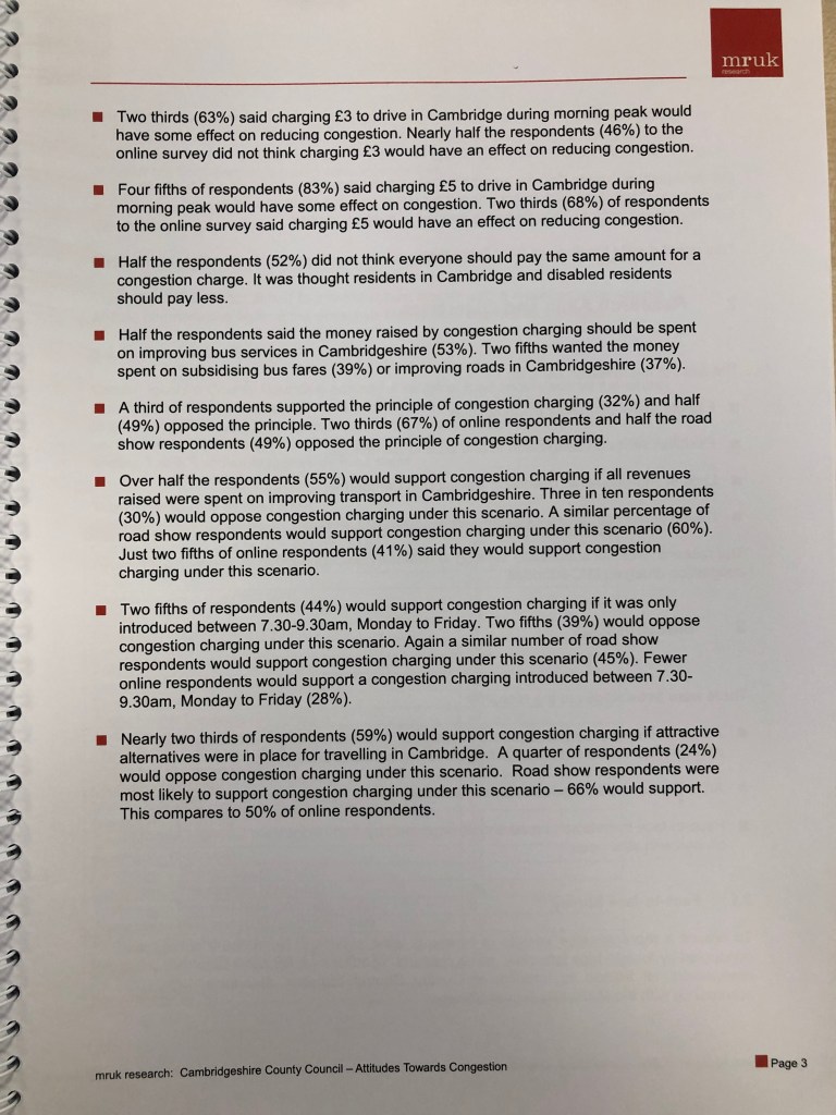 We can look at the executive summary from the consultant’s report on their survey of residents.