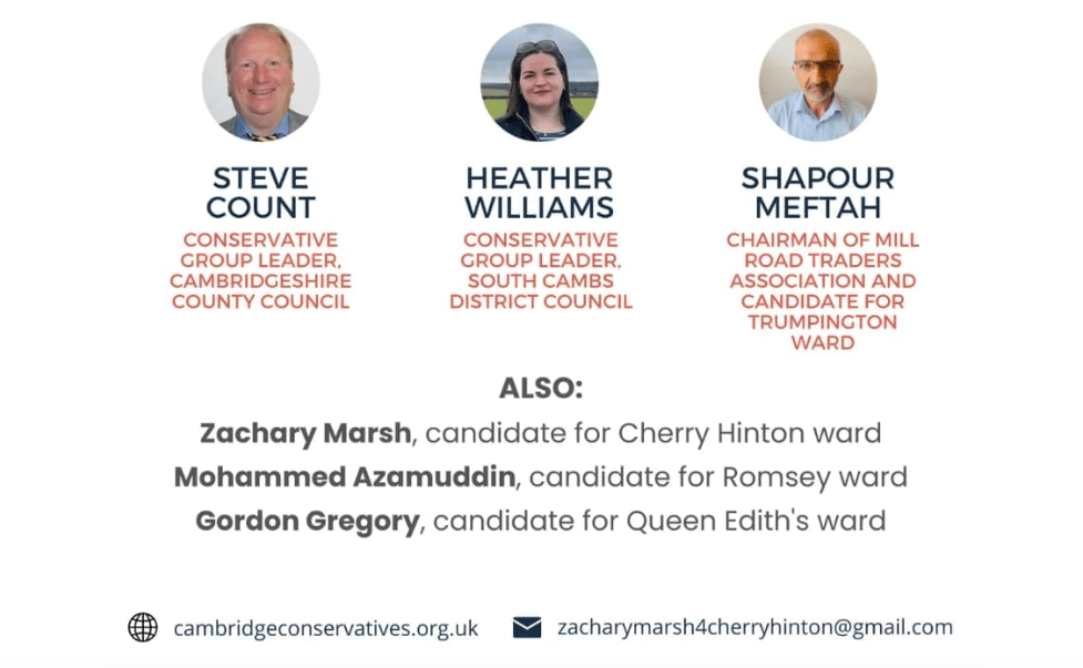It has been decades since the Cambridge Conservatives organised a public meeting in Cambridge, let alone showcasing four election candidates at the same time. But the proposed road user charging / congestion charging plans from the Greater Cambridge Partnership (ironically established by the Conservative-led Coalition Government along with Conservative-led South Cambs District, and Cambridgeshire County Councils, and the outgoing Liberal Democrat-led Cambridge City Council) may have given what was once a mighty social movement in the city a route back into Cambridge local politics.