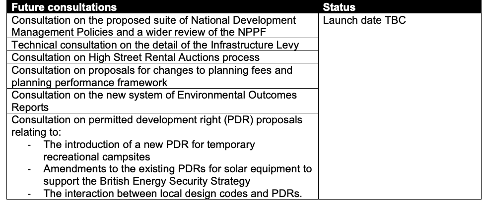 Above – the table from The Minister for Housing to the Chair of the Commons LUHC Committee