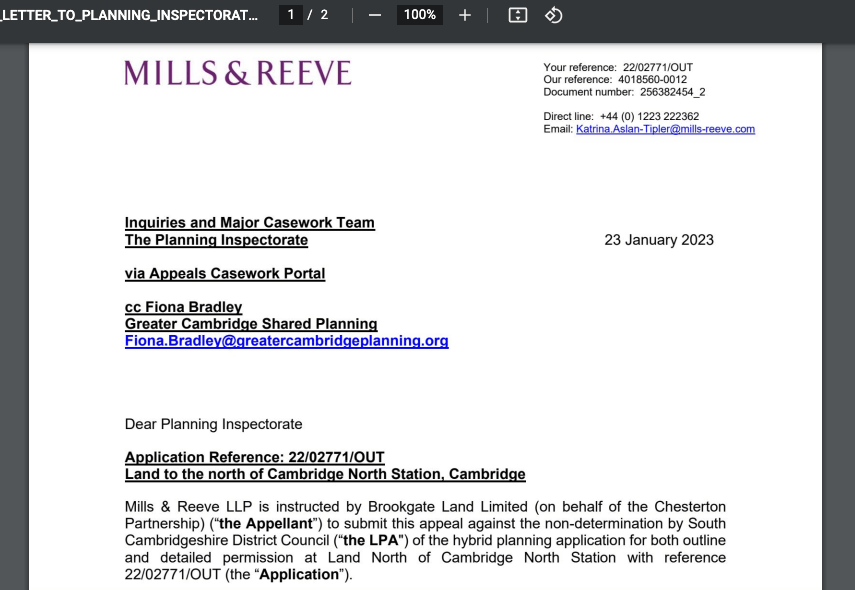 Type in the reference number into the search box via the ‘planning’ & ‘simple search’ drop-down menus and you can see the documents. What’s striking about this case isn’t just the complexity of it, but the fact that the developer has already appealed to the Government’s Planning Inspectorate against the councils (being decided by a joint committee of Cambridge City & South Cambridgeshire District Councils) ***before the councils’ joint planning committee has had the chance to judge the case***.