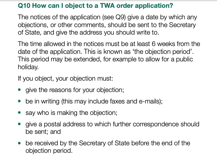 Above – from the Department for Transport – a brief guide to Transport & Works Act orders