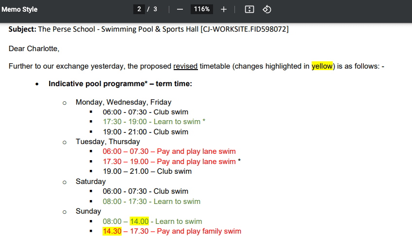 “This programme would see 9 hours per week of pay and play use of the pool, 16 hours of club swim, and 20 hours of learn to swim. The aggregate amount of community use would be 45 hours per week.”