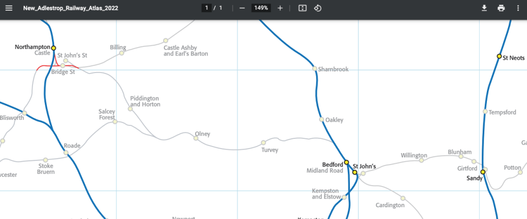 Above – from the New Adlestrop Railway Atlas of lost and current railway lines.