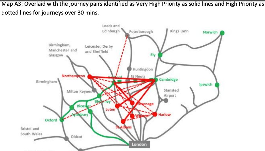 Build East West Rail with stops at Bedford, St Neots and Cambourne, and things change.