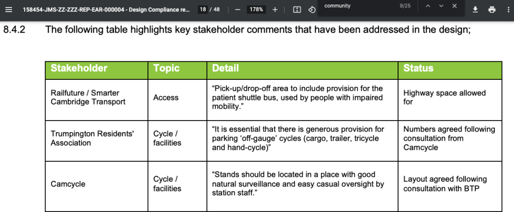 Actually, the document is an interesting case study of how designers have responded to concerns and feedback from local residential groups and city campaign groups such as CamCycle. As a member of the latter, what many people perhaps do not appreciate is how such groups campaign to improve the initial (and too often poor) designs of buildings and infrastructure (because costs are the biggest driver and commercial incentives mean all too often developers go with the cheapest they can lawfully get away with first before conceding on anything).