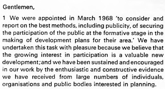 One of the consistent themes that comes back whenever I post updates on proposed developments is the sense that what’s happening to Cambridge from the perspective of more long-time residents is that the changes are being imposed on the city by someone/something else, and their views are never accounted for. I try to explain that this. is something that needs to be solved by national government, but the reality is that national government is even more broken so the problems won’t get resolved and we’ll carry on. Again, this is not a new problem – half a century ago Skeffington and chums published their report on People and Planning. (You can read it here)