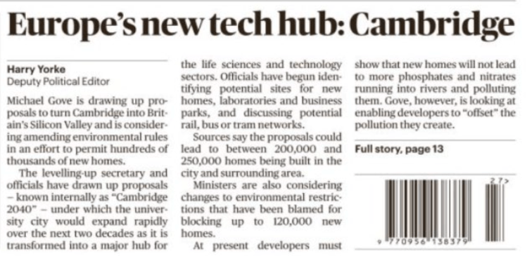 Several people online have mentioned that South Cambridgeshire is inevitably tied up in all of this because of Cambridge’s 1935-era municipal boundaries.