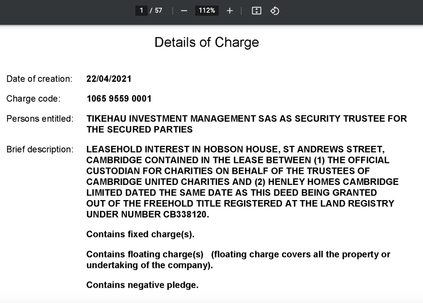 Above – from Companies House. It looks like the providers of the finance behind the project have registered a charge on the property, and the Companies House entries for the developer indicate the hotel company is now ‘dormant’