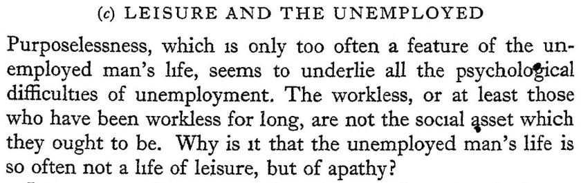 Leisure and the Unemployed, p293/304, in Men without Work (1938)