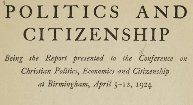 Greenwood’s pamphlet was followed up in 1924 by the Church of England in a series of publication linked to their Birmingham gathering titled the Conference on Christian Politics, Economics and Citizenship. The reports are digitised here. One of them is on politics and citizenship.