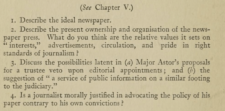 The section on political education (p30 here) is particularly interesting as the issues sound depressingly familiar despite the changes in technologies and social attitudes. Yet the publication also reflects the struggle that the Established Church had in coming to terms with this new era of mass representative politics and mass media. Furthermore, it carries a series of discussion questions – such as on the role of the print press below.