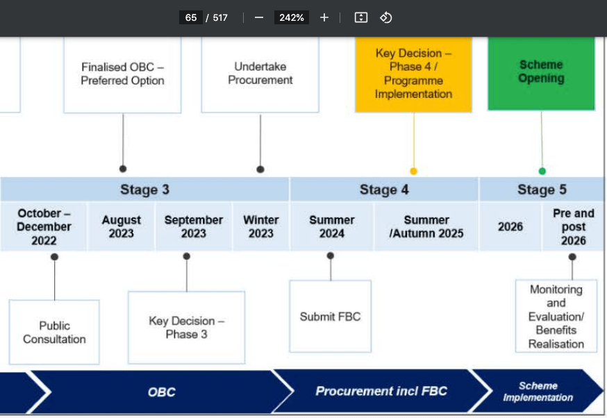 Page 70 – timeline of the Making Connections (Appendix 1) which has been contested all the way through since the first plans became apparent.