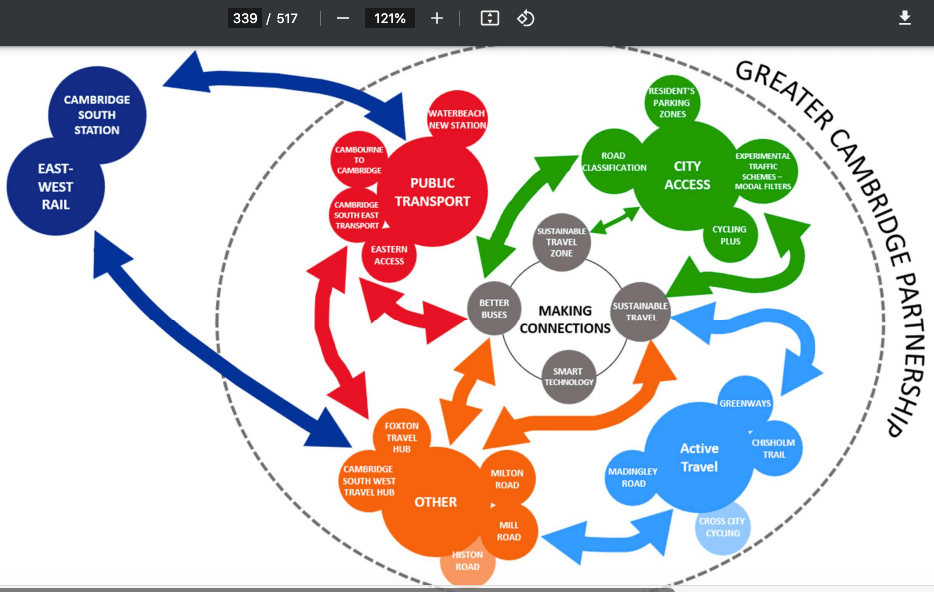Page 427 – Cambridge Eastern Access Project – initially was meant to be part of James Palmer’s CAM Metro but has ended up being little more than cosmetic roadside improvements creating on road bus lanes and cycleways.