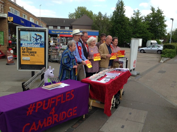 Above: Election campaigning – Puffles and Labour outside the old Budgen’s store (where I used to work while studying for my A-levels!)