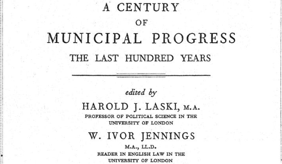 Above – Messrs Laski, Jennings (The latter later the Vice Chancellor of the University of Cambridge) and others wrote and edited this publication from 1935 celebrating a century of municipal progress – local government in England 1835-1935. (Subsequently followed by Half a century of municipal decline, published in 1985! (Second hand book copies of the latter can be bought here))