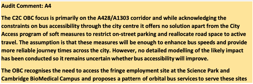 This follows on from a point made by Prof Sarah Sharples of the University of Nottingham, and the Chief Scientific Adviser to the Department for Transport at the Cleevely Lecture in Cambridge. (See my write-up here). Her premise was that in imagining what transport will look like and be like in 2050, we have to examine *how* we get there in terms of public policy changes and also changes to our built environment. That means thinking about transport as an integrated system rather than as A-to-B corridors that the Greater Cambridge Partnership’s officers and technical advisers have done with their busways proposals. They were called out on this by independent auditors back in May 2021, and even now the GCP still has no comprehensive response to the challenge from that assessment.