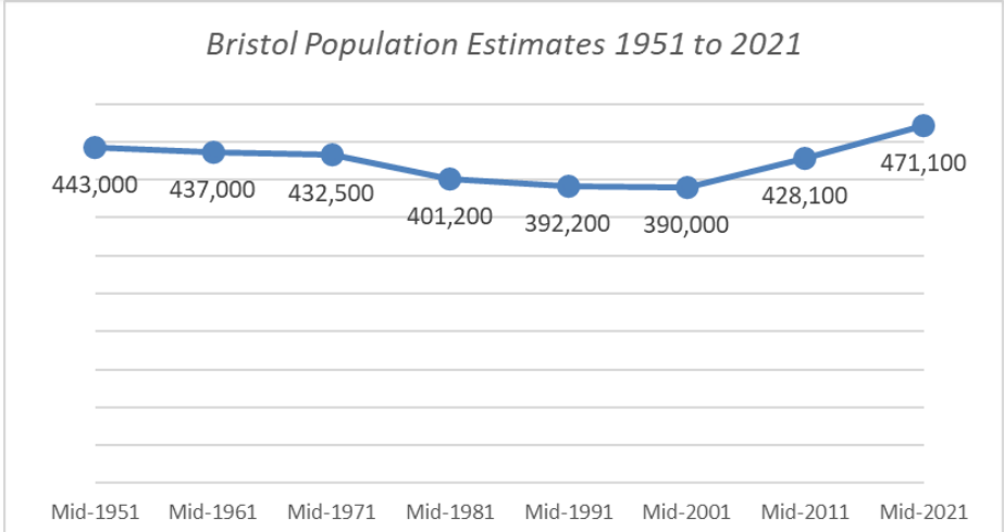 Again, we must be mindful of direct comparisons with Bristol – not least because if you look at the Joint Strategic Needs Assessment for Bristol, the population since 1951 has shown a fall, then a rise – the current population being less than 10% higher than what it was when King George VI was on the throne.