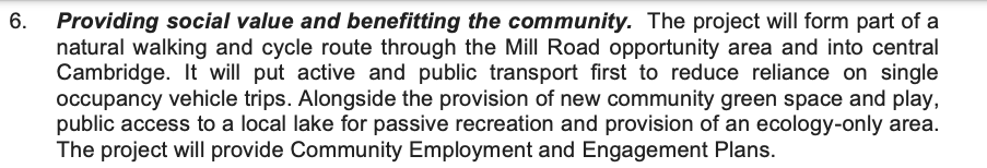Instead of scheduling their own shuttle buses, it would make more sense for the development to subsidise an existing service (that Cambridge City Council already subsidises) to increase significantly the frequency of the service and to pay for electric buses to do the shuttling rather than old cheapo diesel ones.
