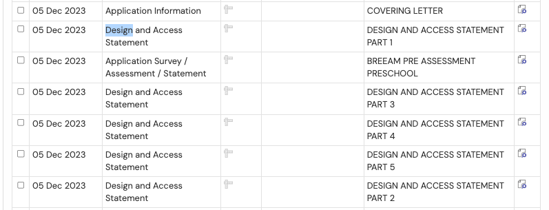 Above – the Planning Statement looks like this. Scroll down the list and click on the right hand side of the row that says ‘Planning Statement’ and this will come up.