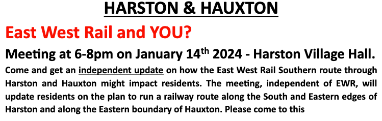 The debate will be on East West Rail’s Bedford-Cambridge route which as you may recall, The Chancellor of the Exchequer confirmed the Government’s support for a southern entry route into Cambridge in his Autumn Statement 2023. A number of residents living close to the proposed route have opposed the proposals and have formed the Cambridge Approaches Campaign. They will be represented on the panel alongside two confirmed parliamentary candidates for the general election, Pippa Heylings for the Liberal Democrats, and Chris Carter-Chapman for the Conservatives – who will both be contesting the new South Cambridgeshire constituency that now includes the Cambridge City Council ward of Cherry Hinton, alongside Queen Edith’s. You can also read the latest from the campaign group Rail Future East on their campaigns for improved rail connections which include East West Rail. Rail Future East’s main website is here. Any questions or comments, please put to the candidates standing for election, or to your local councillors and MP via https://www.writetothem.com/