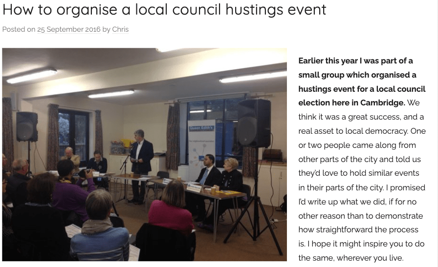 Above – a guide on how to organise a hustings/debate by Chris Rand.