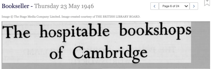 Above – Brinley Newton John was a guest of honour at the Regional Association of Bookseller’s conference dinner in Cambridge alongside the first Labour MP for Cambridge, Major Arthur Leslie Symonds, and Mayor Lady Alice Bragg, the Mayor who welcomed back the Cambridgeshire Regiment from the horrors of WW2 imprisonment in the Far East.