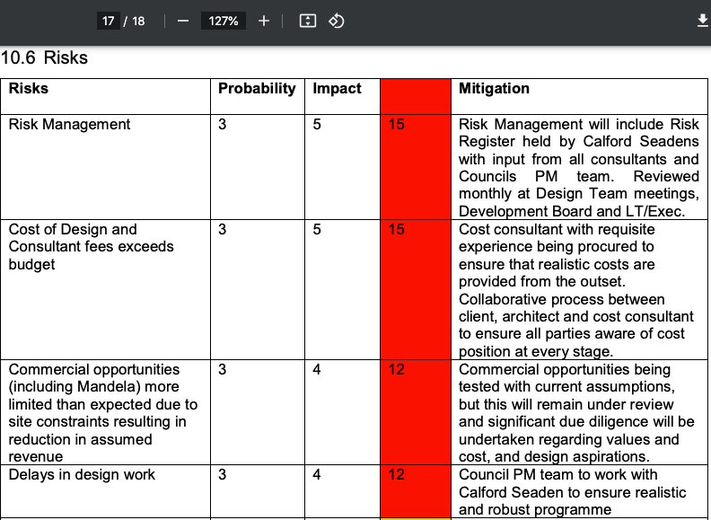 Given the massive impact that this project will have, I’m not entirely sure what the benefit of publishing that part of the paper was other than to demonstrate that the serious work of risk management is yet to start. And that involves a basic policy risk assessment: How could this policy – the creation of a new Civic Quarter (which in principle I quite like) possibly go wrong?