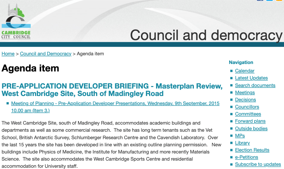 So told the representative of the University of Cambridge to Cambridge City Councillors on 09 Sept 2015