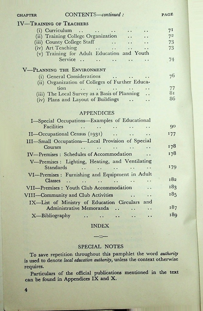Mindful of the post-war reconstruction context *and* the massive expansion of the state under Clement Attlee’s Labour Government, the pamphlet covers far more than just the vocational educational policy area. It covers leisure, the training of those who will teach, and also about what further education colleges should look like as buildings and community facilities.