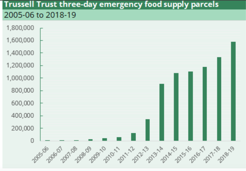 Above – Trussell Trust data on emergency food parcels from House of Commons Library
