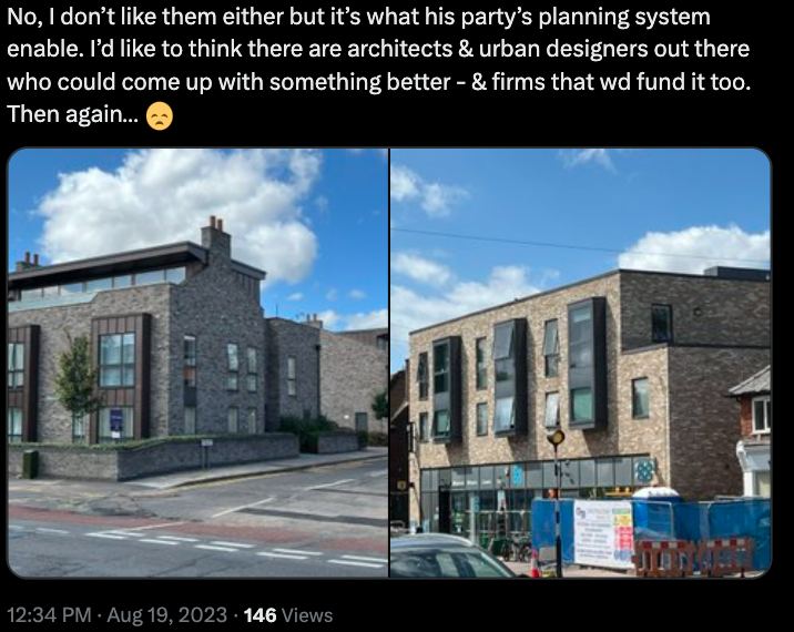 I was looking at another planning application that, yet again replaces a not-particularly inspiring building with one that’s even worse