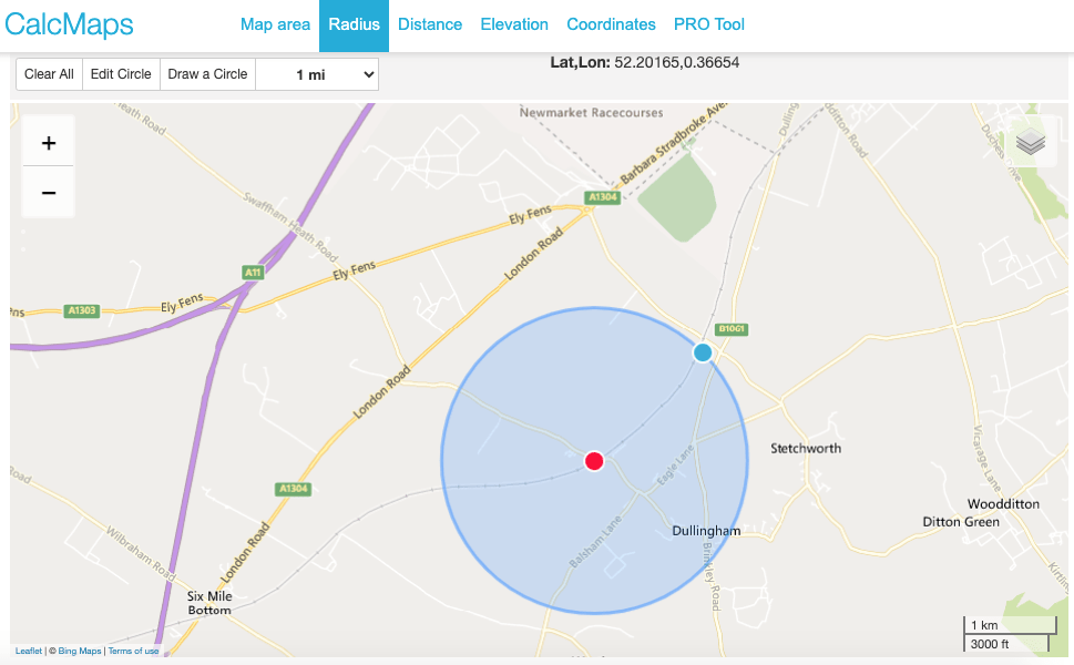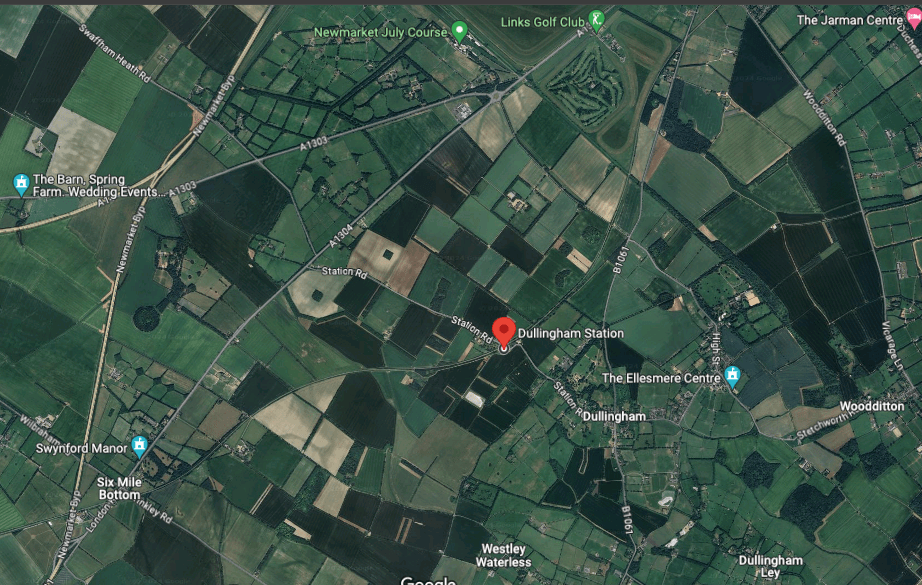 Above – a 1 mile radius from the existing Dullingham station from CalcMaps