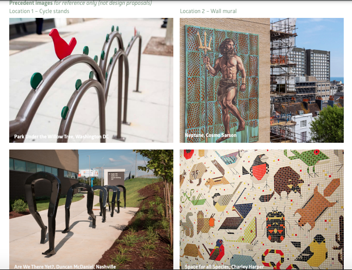 Above – Public Art Strategy P10 – I quite like the murals and the mosaics, but the bike stands will get broken and as for those random walky-bits of metal. Just No.