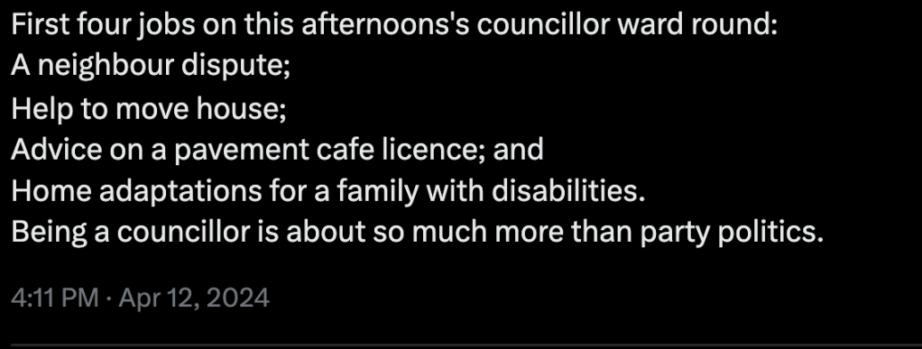 One of the things it took me time to understand (my generation was not taught about politics and democracy at school, college, or university as part of the core set of subjects) was the nature of being an elected constituency representative.