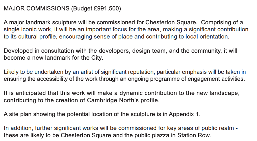 Above – nearly £1million allocated for major commissions – including a major landmark sculpture.