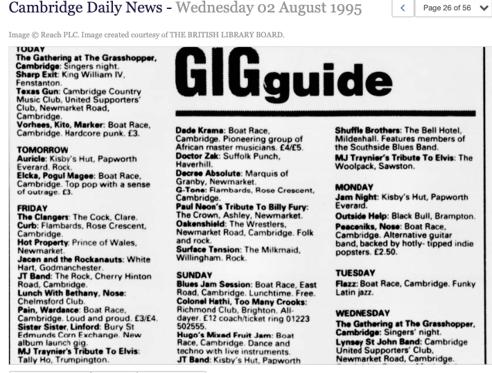 The listings used to be weekly in the old Cambridge Evening News’ entertainment section every Wednesday.