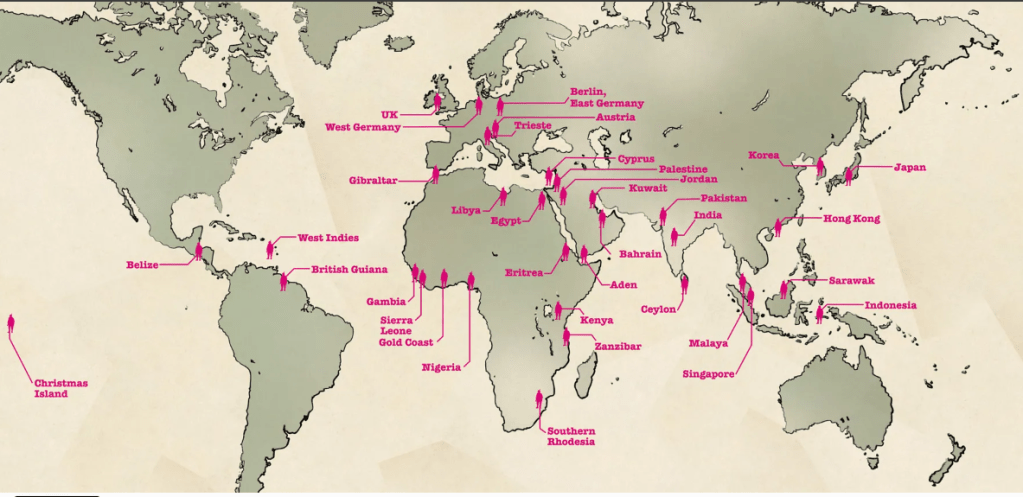 Above – Global areas of operation for National Servicemen, 1947-63. National Army Museum