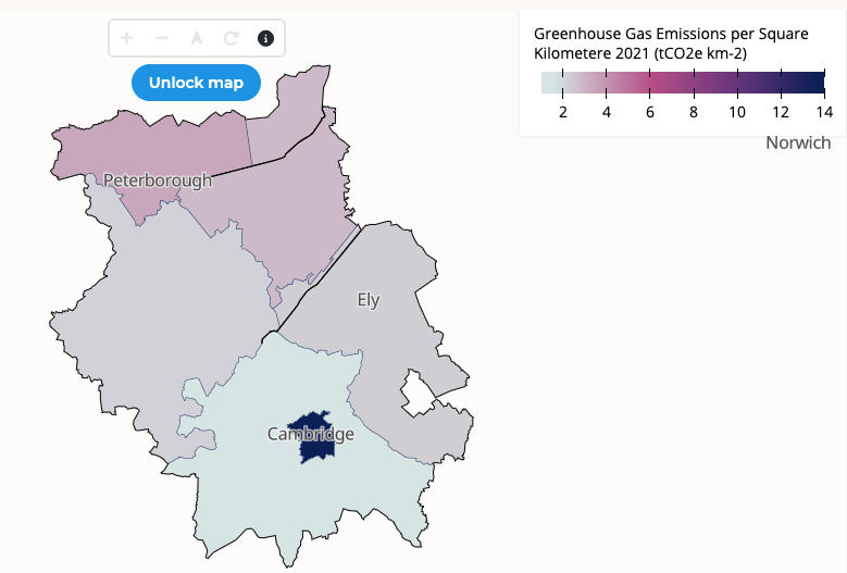 Above – Cambridge’s GHG emissions are considerably higher than other districts in the county.