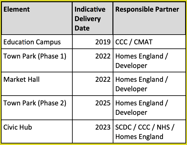 The timetable from Northstowe’s website and town centre strategy is as below