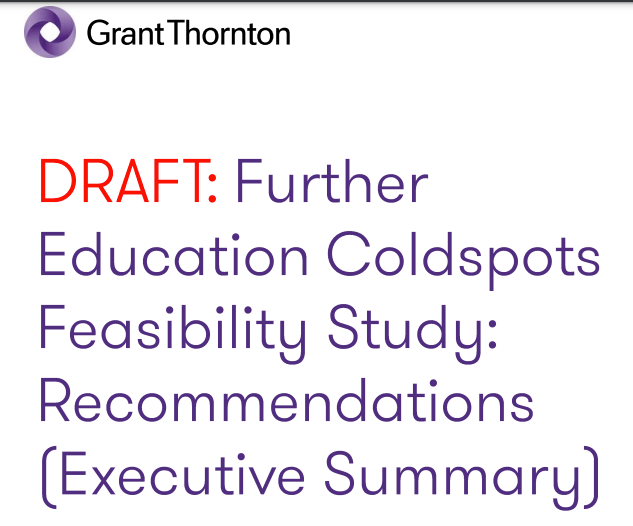 Disappointed but not surprised is my take on the long-awaited Grant Thornton study on the further education ‘cold spots’. You can see the formal reports item 6 of the CPCA’s Skills Committee meeting papers 29 July 2024 here.