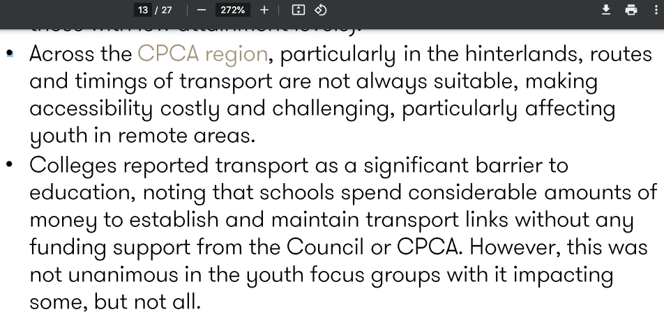 Which is a basic level error when doing public policy analysis of this magnitude. They restricted themselves to recent policy history from the founding of the CPCA (See Appendix C p5 of item 6) which did not explain for example how Cambridgeshire ended up with such a large concentration of further education places located in such a small geographical part of Cambridgeshire. I covered this in a 2021 blogpost here.