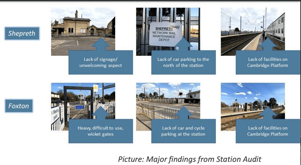 This also links up with work done by the South Cambridgeshire villages on the Cambridge-King’s Cross line, residents using Foxton, Meldreth and Shepreth railway stations carried out an audit not just on the stations but on the routes to/from. It is sobering reading.