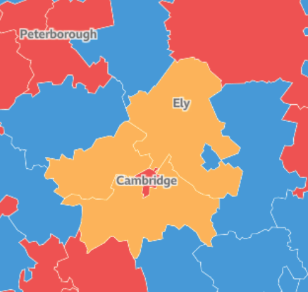 Above – the constituencies of Cambridgeshire plus some of the bordering ones post-July 2024