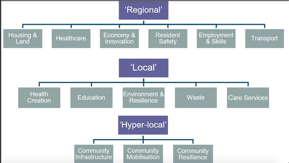 - Sustainability – it goes without saying that you don’t want a system that will bankrupt the residents and businesses, nor end up too dependent in the long term on central government support. At the same time you want whatever structures are there to be able to make positive differences rather than to be seen by residents as an unresponsive tier of government – which was what the old GO-Network was often seen as.