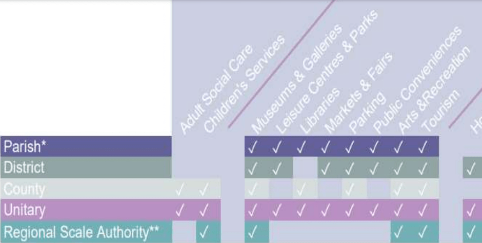 - Hyperlocalism – as at the top, the starting point is my 2023 blogpost here. i.e. ***paid full-time unitary councillors*** supported by part-time councillors functioning at town and parish level, which unitary councillors are also automatically members of. Where a settlement has a very strong case for forming its own parish or town council, powers and funding can and should be devolved – with the assumption on devolution first, and also with powers to escalate upwards if such a council cannot resolve an issue (or needs additional funding for it)