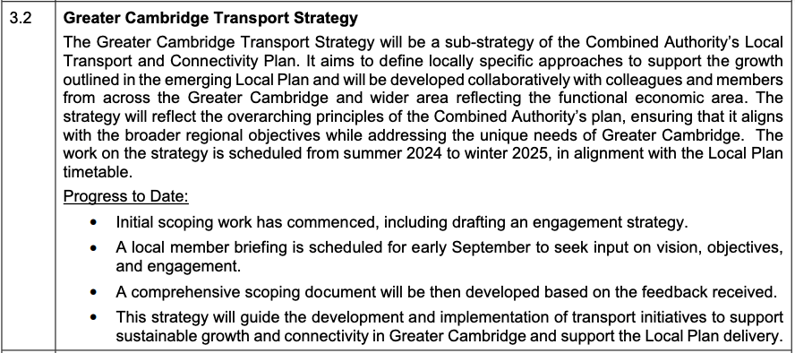 The problem as Mr Jervis highlights, is that the full sign off of this plan won’t be until ***after*** the county council and mayoral elections. The current status as below is from the CPCA’s Transport and Infrastructure Committee of July 2024 – see item 6 para 3.2
