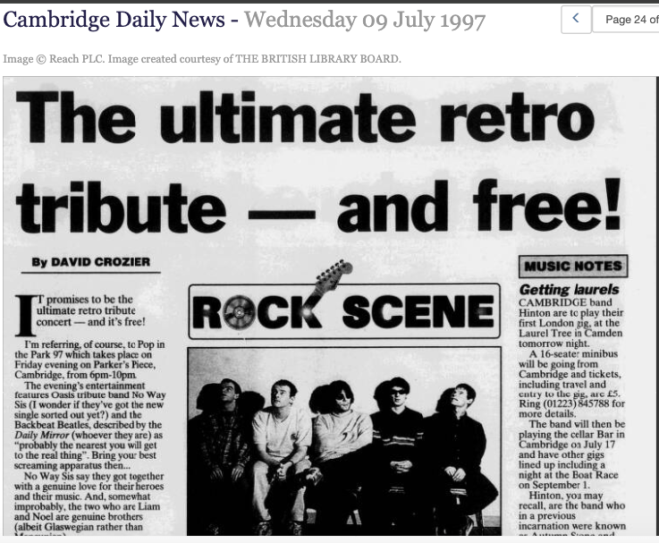 Above – Cambridge Evening News Wed 09 Juky 1997, in the British Newspaper Archive
