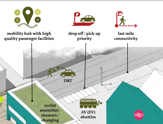 It was the ‘last mile connectivity’ icon that caught my eye – if anything because the Greater Cambridge Partnership have glossed over their serious shortcomings on this. The two images below are details from p25 here