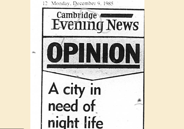 The decline of dance halls, night clubs, and entertainment centres in Cambridge
