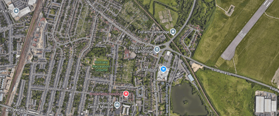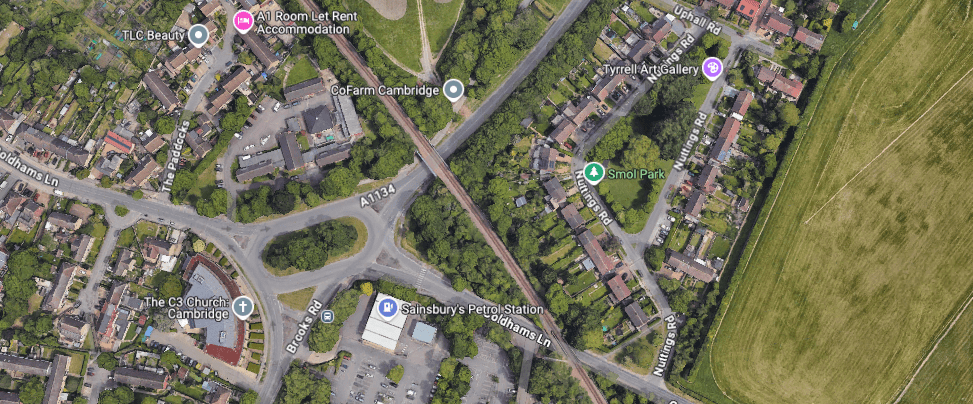 By the junction of Coldham’s Lane, Barnwell Road, and the Cambridge-Newmarket Railway – and I would have this as part of a wider 25-year plan